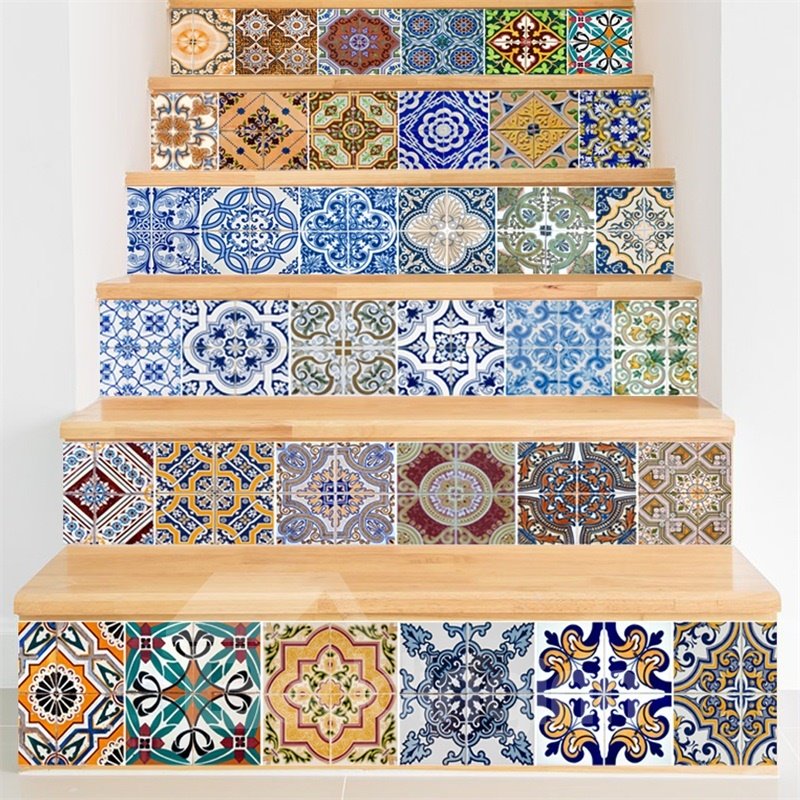 Mexican Traditional Talavera style gives you a kind of vintage. The material PVC is environmentally friendly and waterproof. This set includes 6 pieces of stair murals, each 7*39in. If you want 13-piece stair murals with the same style, please click SHOP THE SET.