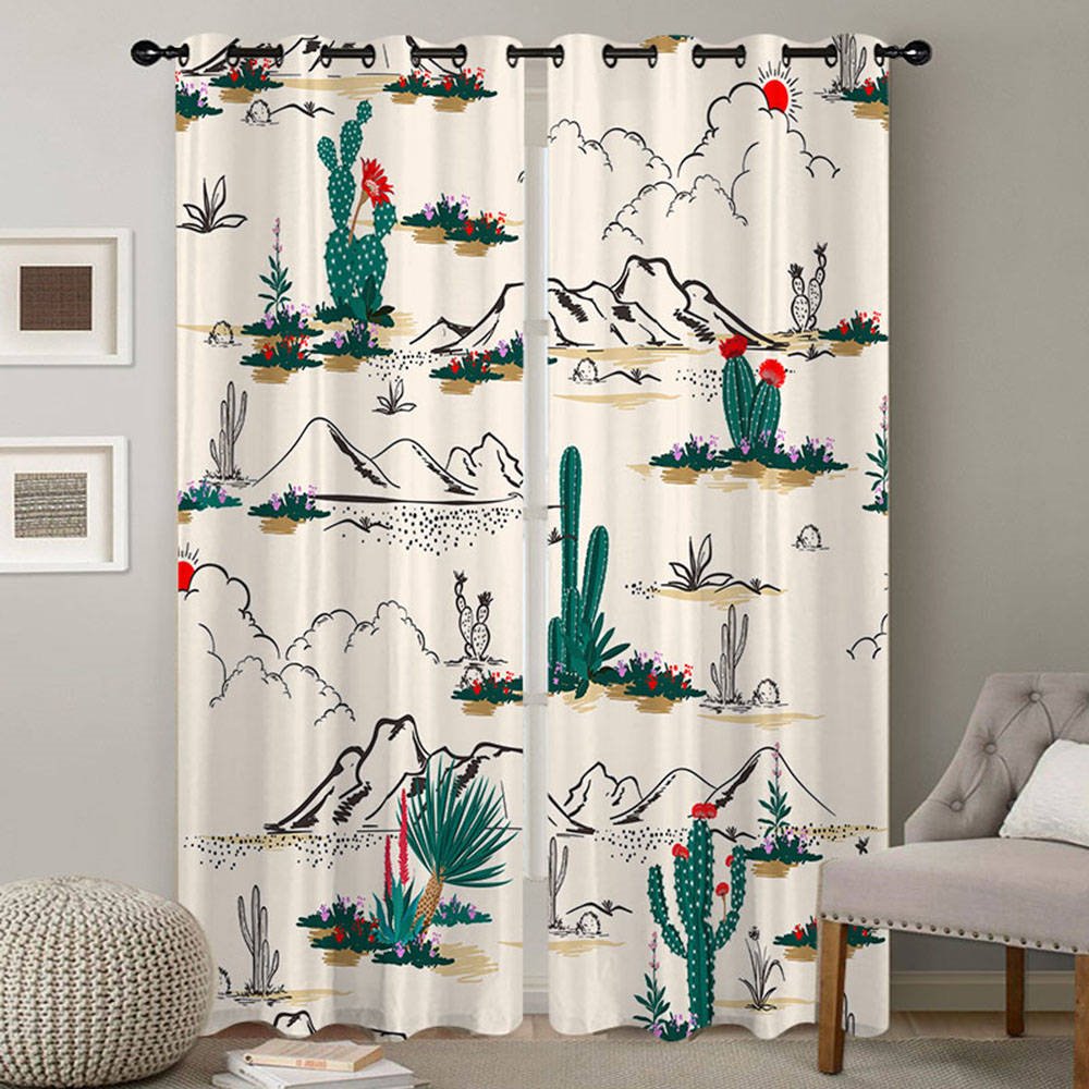 Modern 3D Printed Curtains Cactus Pattern Custom 2 Panels Drapes for Living Room Bedroom Decoration No Pilling No Fading No off-lining Polyester