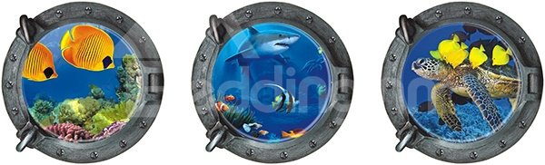 Animals in the sea are playing leisurely. Three round pieces can be stuck horizontally on the wall. 3D effect makes you feel like diving in the deep sea, actuallyat home. And the material is waterproof.