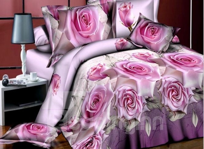 Noble Pink Rose 3D Printed 4-Piece Polyester Duvet Cover