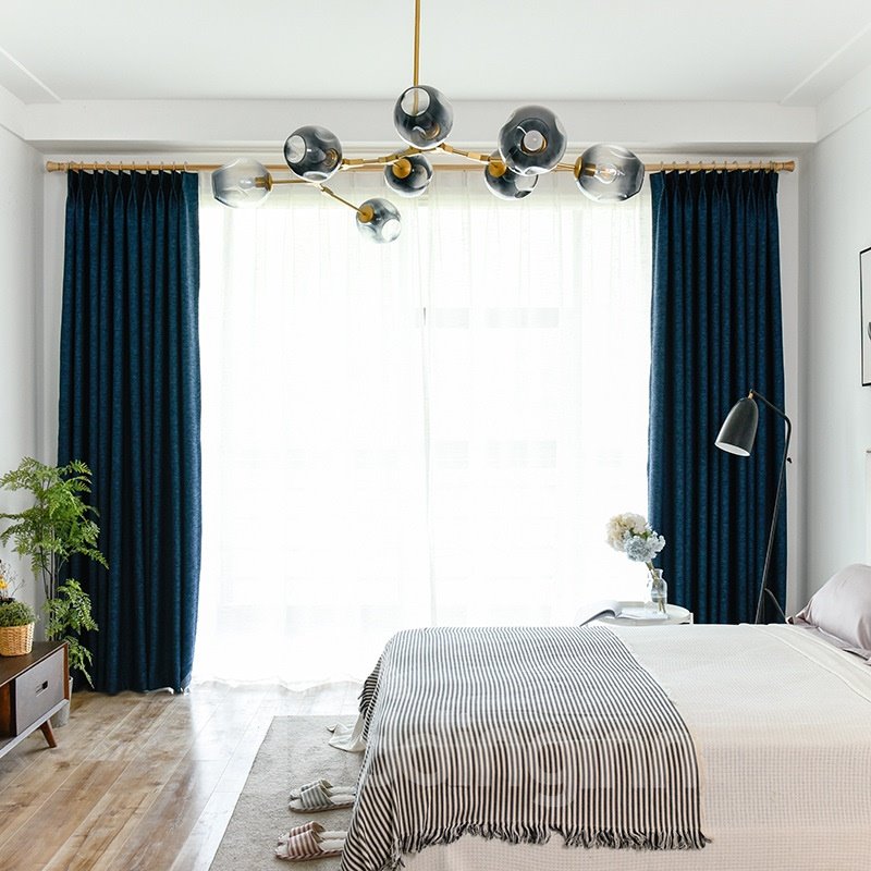 Nordic Simple Blackout Navy Curtains Custom Ready Made Curtains for Living Room Bedroom