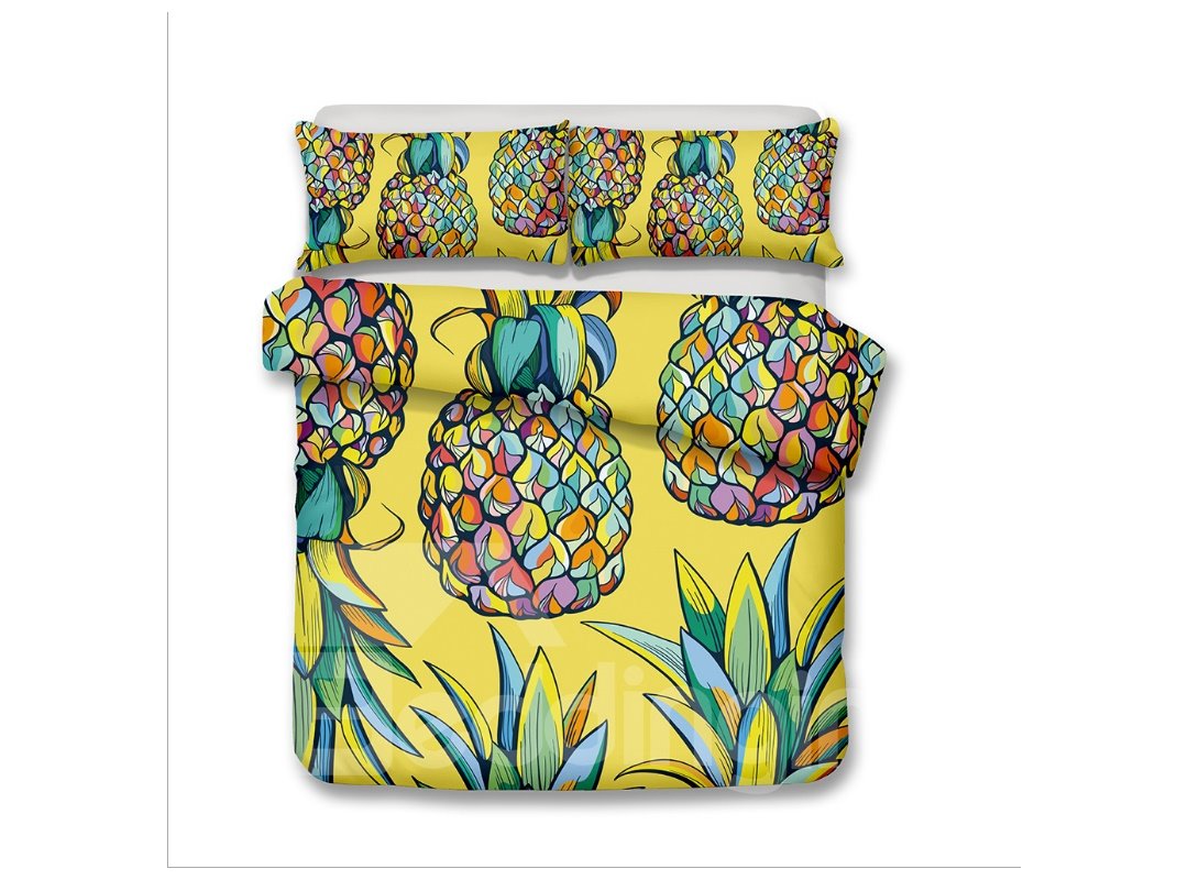 Pineapple Wearing Sunglasses Printed 3-Piece 3D Bedding Sets/Duvet Covers
