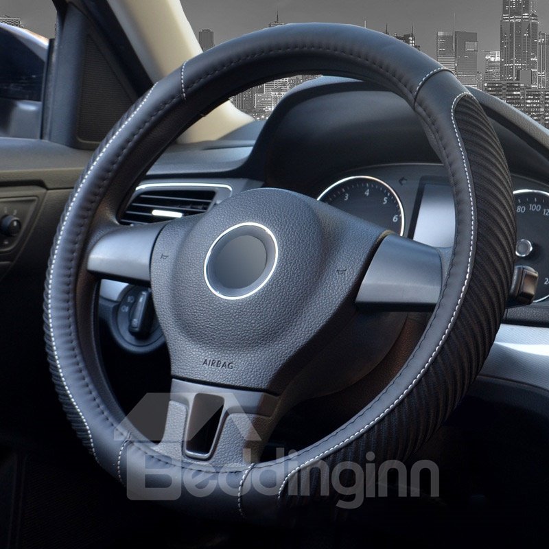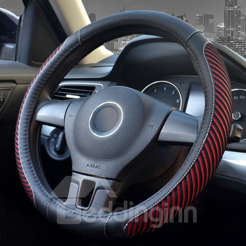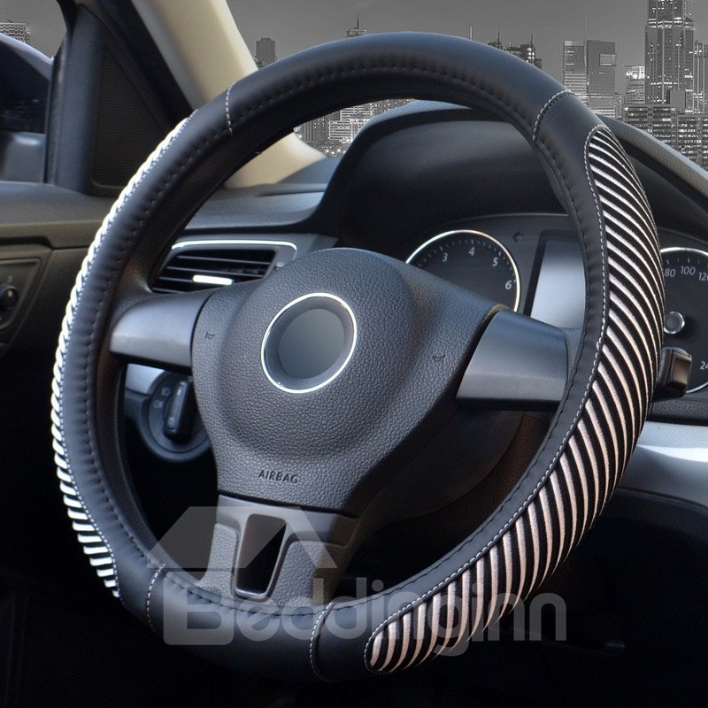 Pinstripe Design Ice Silk Sewing Non-Slip Breathable And Comfortable PVC Leather Steering Wheel Cover