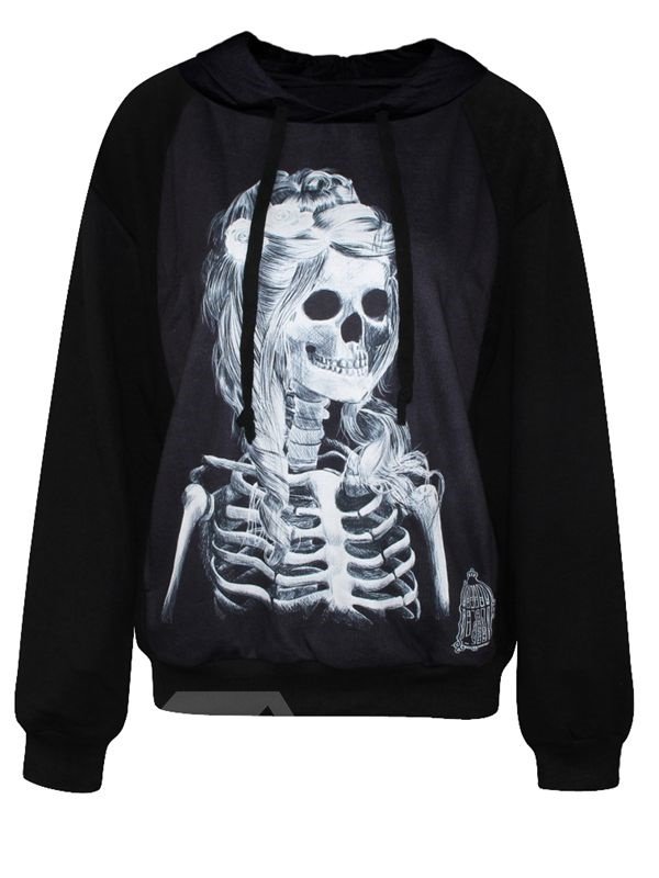 Pretty Long Sleeve Skull Girl Pattern 3D Painted Hoodie