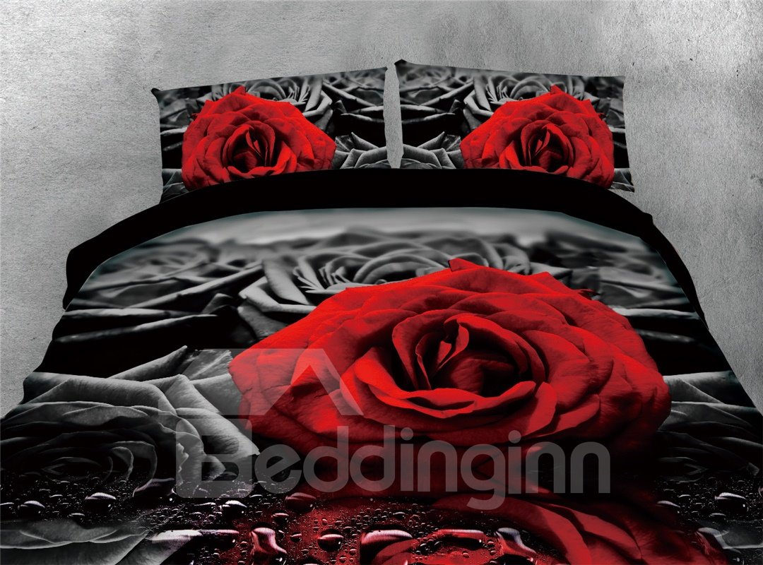 Amazing rose prints bedding sets make a romantic feeling! The bedding set entices in beautiful red roses. It can set up a luxury and romantic atmosphere for you. The black part makes it perfect addition to the bedding set.