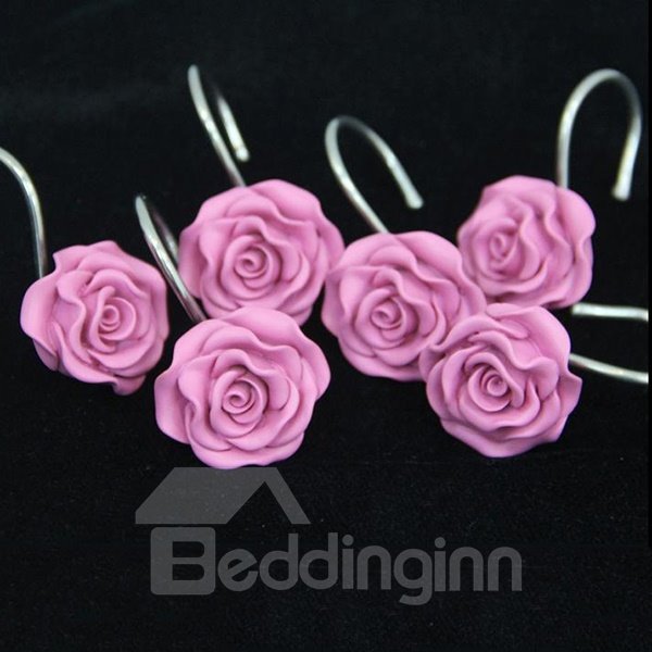 Romantic Sweet Pink Rose 12-pieces Shower Curtain Hooks
