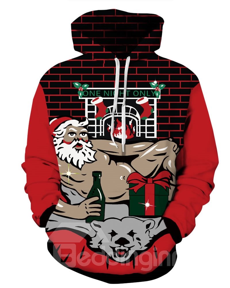 Sexy Santa Wine Gift Christmas Long Sleeve 3D Pattern Hoodie