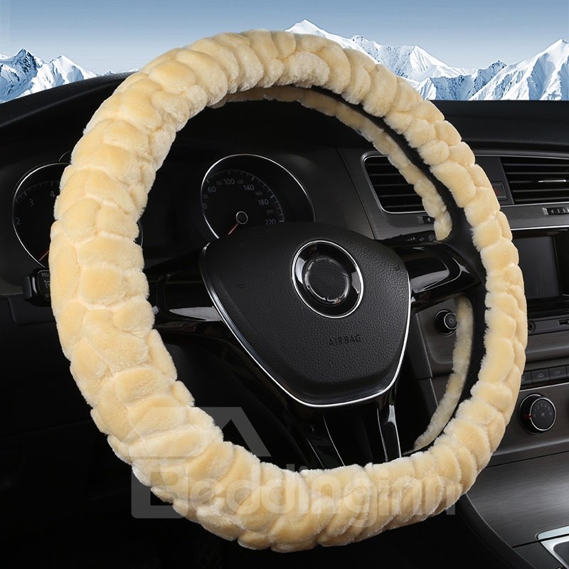 Short Plush Velvety Soft Textured Car Steering Wheel Cover Sets