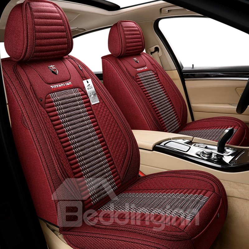 Simple Style Linen Material Environmentally Friendly Tasteless Breathable And Colorfast 5 Seats Universal Truck Seat Covers