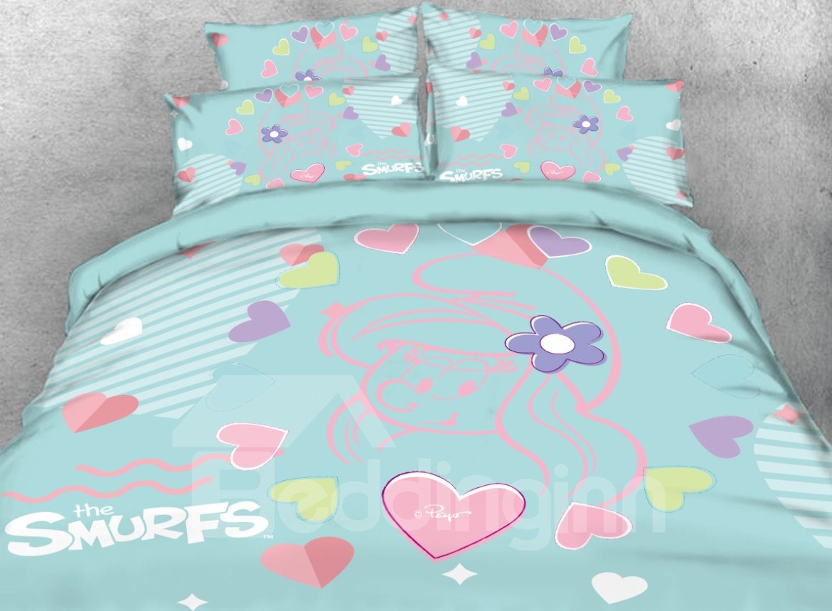 Sketch Smurfette with Love Heart Printed 4-Piece Bedding Sets/Duvet Covers