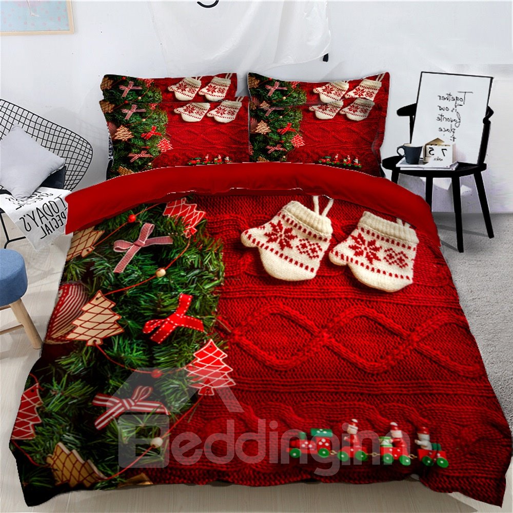 Capture classic charm in your bedroom with this 3D Christmas bedding set. It will add an enchanting look to any winter bedroom. Sure to bring bright holiday cheer and cozy comfort to your sleep space.  The creative design will create a fun and delightful atmosphere in your sleep space.  It is a wonderful addition for gothic style bedroom. The entire bedding is made of strong polyester, making it durable and soft as well as machine washable. Features a hassle-free hidden zipper closure, make it easy and efficient to put this duvet cover on your comforter.