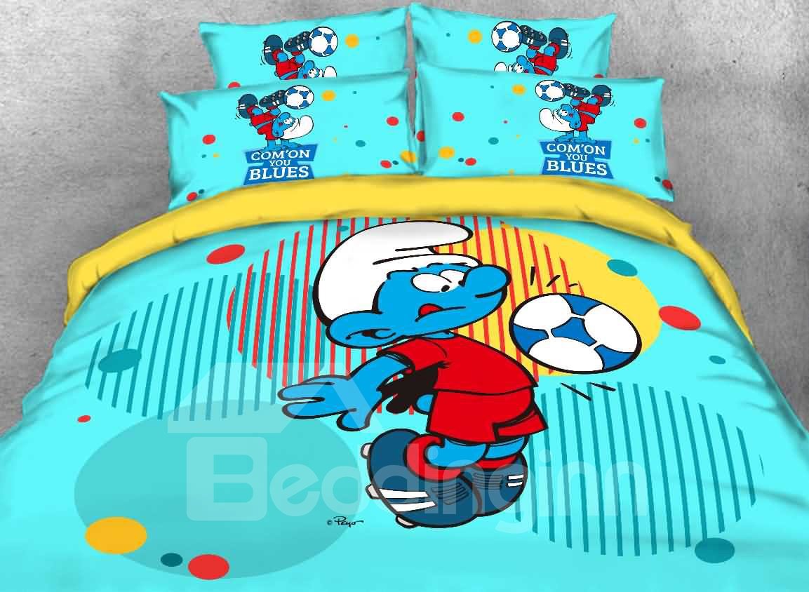 Soccer Smurf with Colorful Circles Printed Twin 3-Piece Kids Bedding Sets
