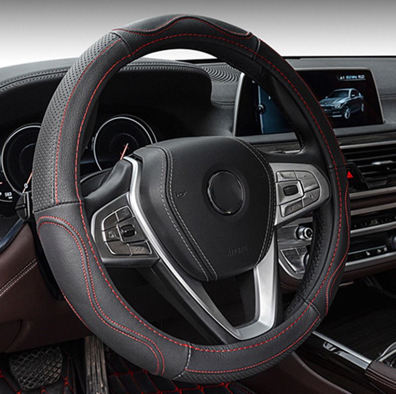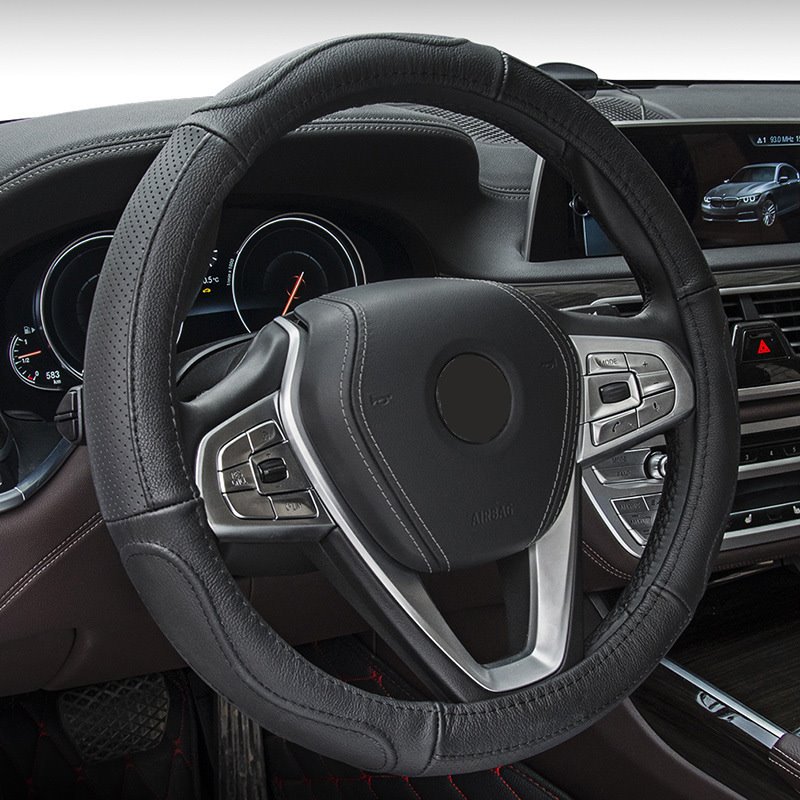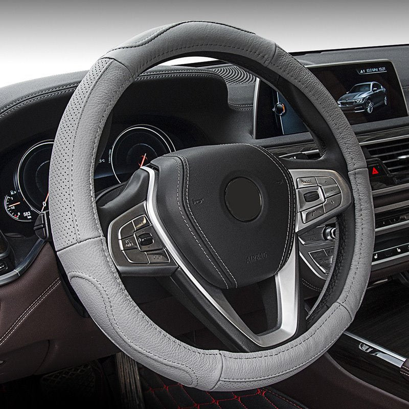 Sport Leather Steering Wheel Cover 14 1/2 inch to 15 inch Universal, Padded Soft Grip Breathable for Car Truck SUV Jeep, Anti Slip Design