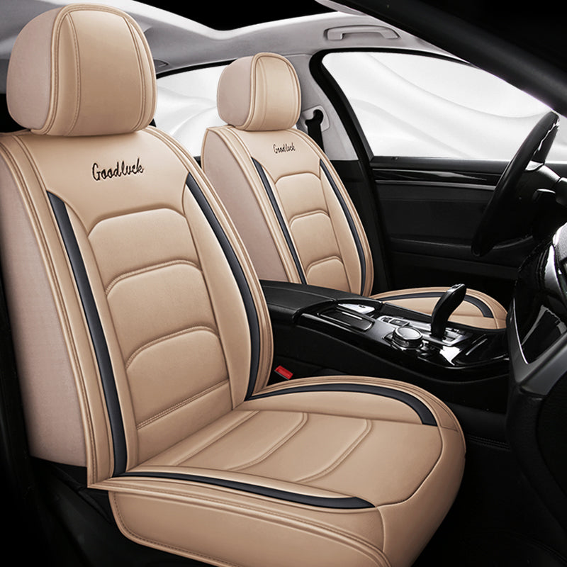 Why not try these simple striped block pattern car seat covers if you are not a fan of fancy sophisticated design? They can easily fit in with different interior settings, looking tidy, sleek yet not dull on your car. Made of tough PU leather, they are durable for daily commute, while the filling layers of breathable cloth and density sponge ensure the comfort and support you need on the road. They are universal fit, working with most cars, like Altima, Malibu, Genesis, Liberty, ES330, GTI and others alike.