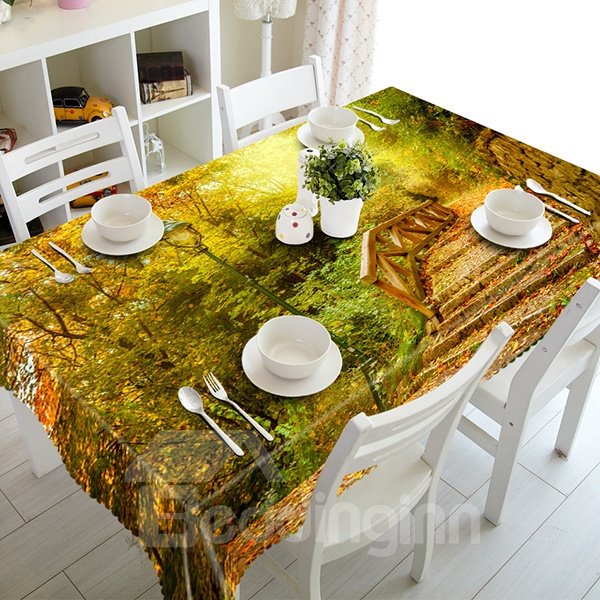 Stylish Polyester Forest and Bridge Pattern 3D Tablecloth
