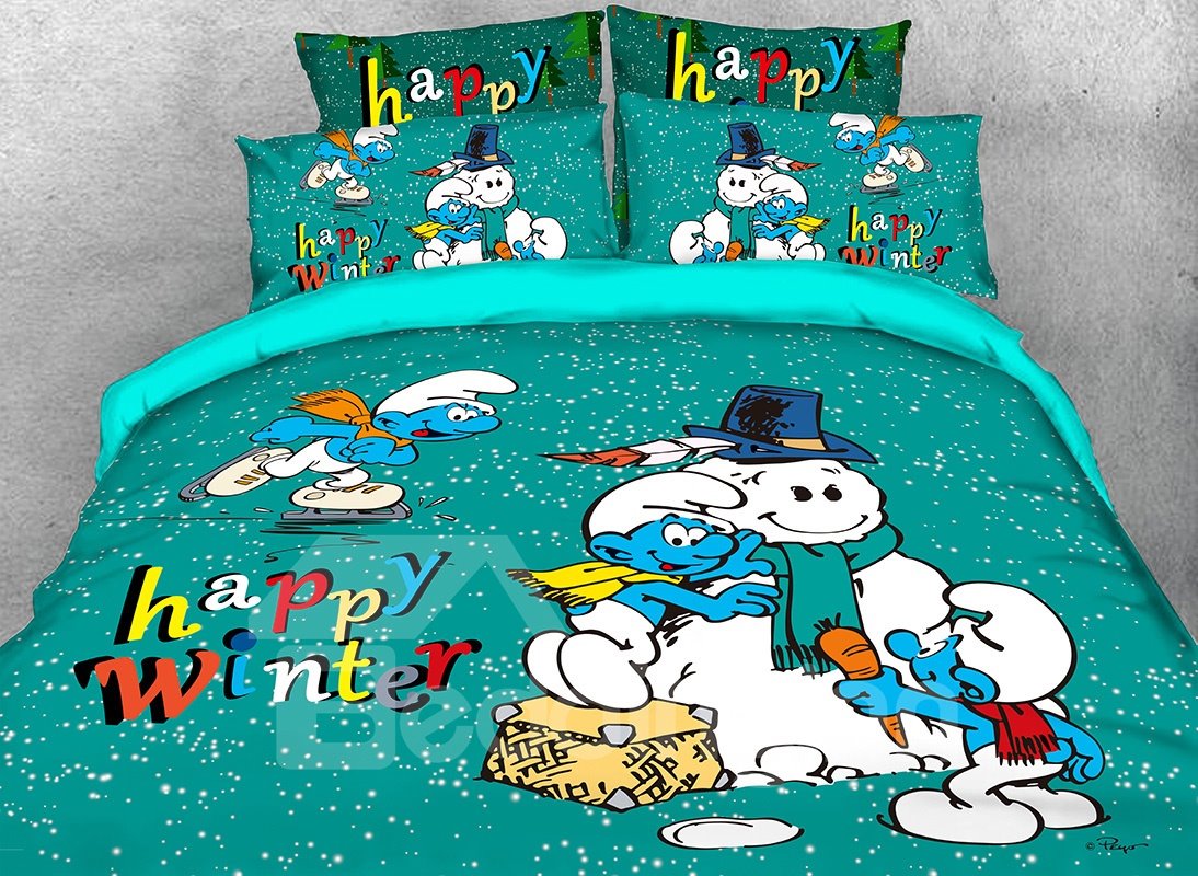 The Smurfs Building Snowman Printed Twin 3-Piece Kids Bedding Sets