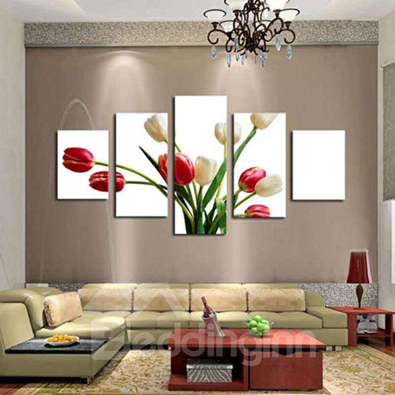 Tulips Pattern Hanging 5-Piece Canvas Eco-friendly and Waterproof White Non-framed Prints