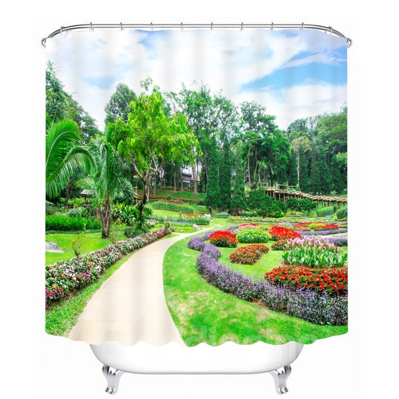 Vibrant Park with Colored Flowers 3D Printed Bathroom Waterproof Shower Curtain