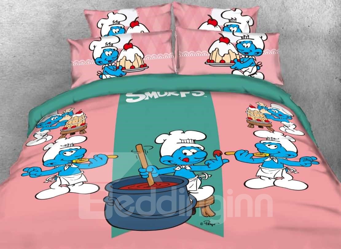 Memories of playing with my smurfs when I was child started to come back. Wearing his Chef’s whites and hat while holding a wooden spoon up to his mouth to taste his latest creation. On his hand his thumb and index finger are connected into a circle to show his approval. With the adorable design, this chef smurf design bedding set is sure to add a new decorative element to your bedroom. Available in four sizes, our bedding set is versatile for your bed. Made of cotton and tencel blend, you’ll experience all the breathable benefits of two materials renowned for adding softness and comfort. Features a hassle-free hidden zipper closure, make it easy and efficient to put this duvet cover on your comforter.