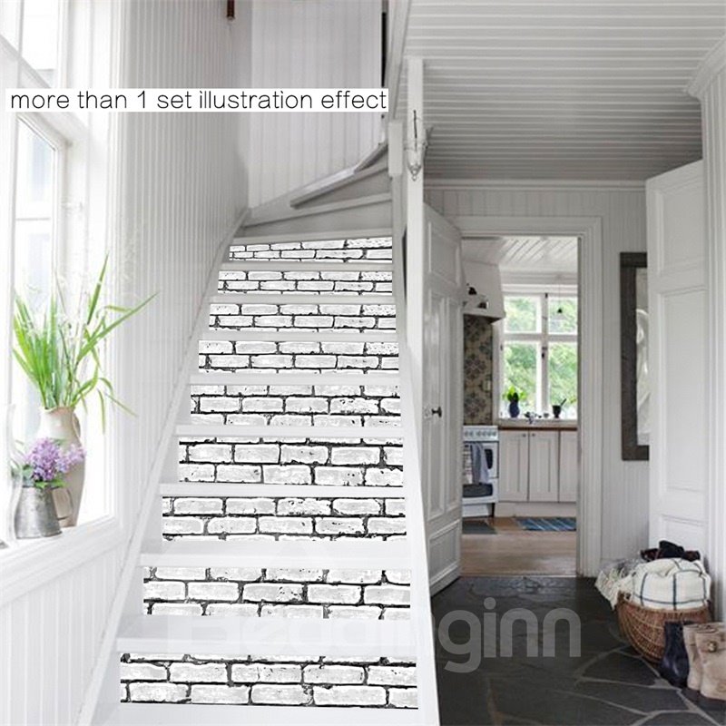 White bricks show the simplicity. The material PVC is environmentally friendly and waterproof. This set includes 6 pieces of stair murals, each 7*39in.